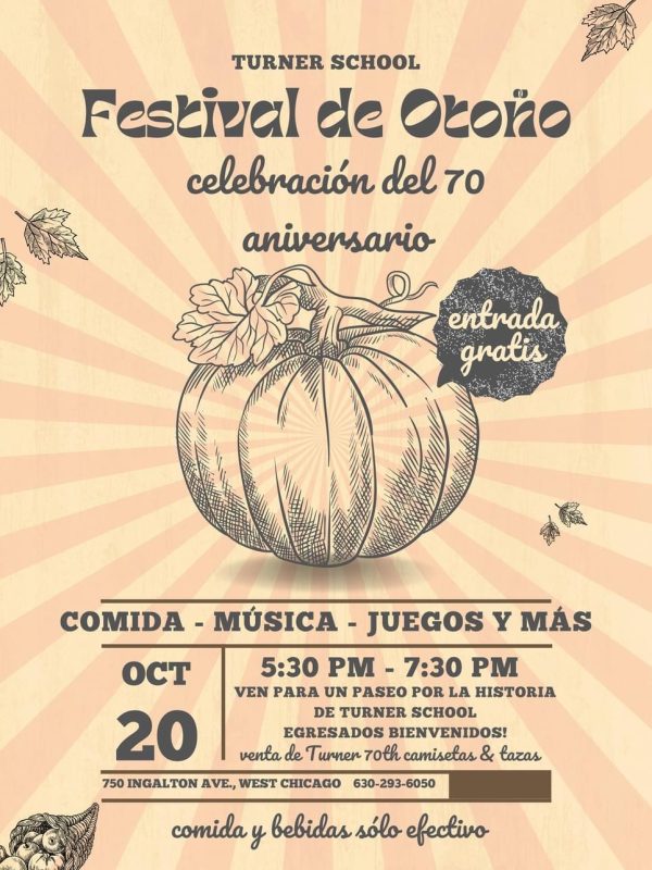 Todos los estudiantes actuales y ex alumnos de Turner, amigos y familiares están invitados. La Escuela Primaria Turner llevará a cabo su Festival de Otoño anual que también celebrará el 70 aniversario de la Escuela Primaria Turner.