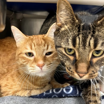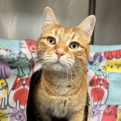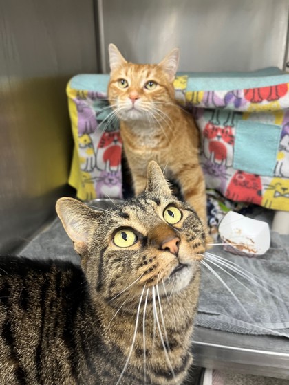 Introducing Monty, the handsome orange tabby boy looking for a forever home with his brother, Mookie! Monty and Mookie are a bonded pair of affectionate, loving big boys! They came to the shelter when the children in their home developed allergies. Their previous owners told us that these boys love cuddles, and that they were very tolerant of the young kids in the home snuggling them and picking them up. Here at the shelter, we learned that Monty and Mookie need a little bit of time to