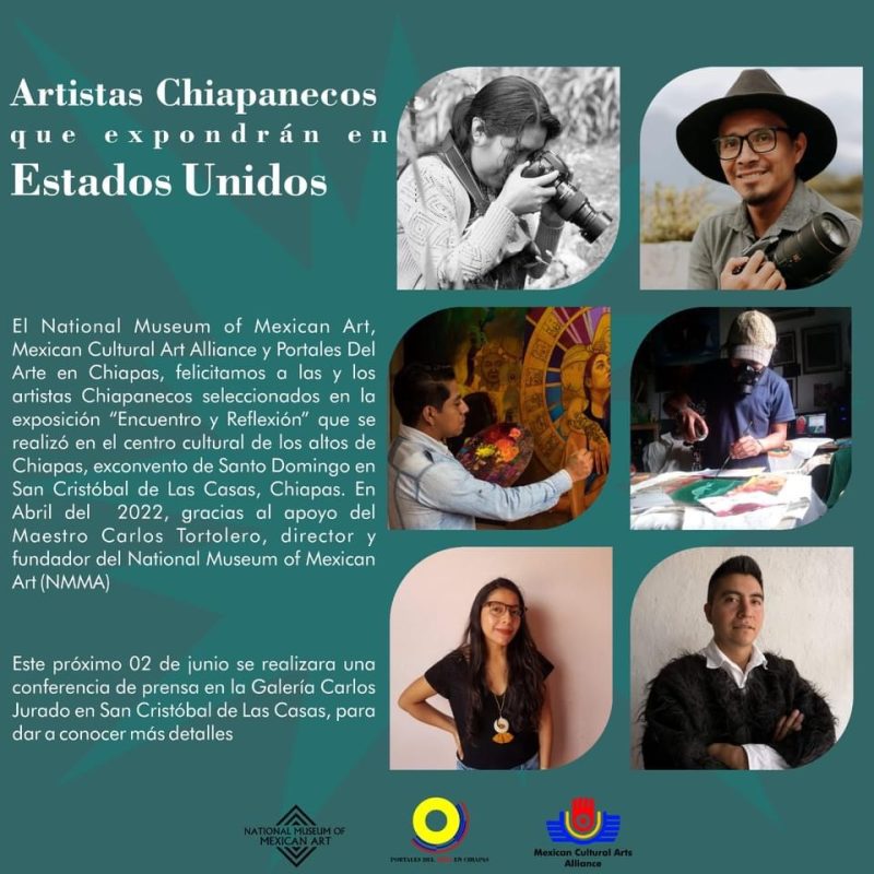 This exhibition has received funding from the National Museum of Mexican Art, in collaboration with the National Group, Mexican Cultural Arts Alliance, and Portales del Arte en Chiapas.