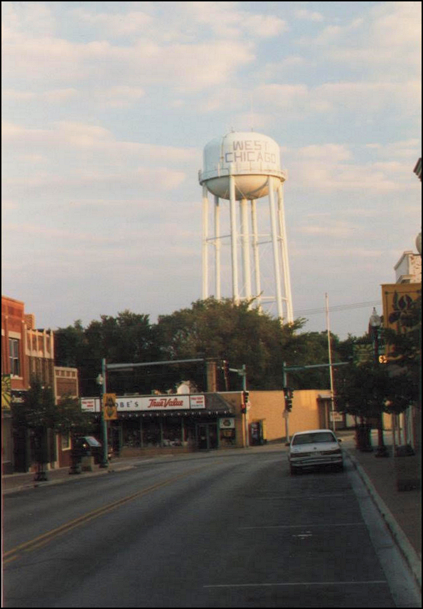 Una torre de agua sirve como tarjeta de visita de una comunidad. Es una señal para las personas que se aproximan de que ahora están entrando en un nuevo municipio. La torre de agua de Fremont Street en West Chicago es una estructura gigante, tiene capacidad para un cuarto de millón de galones de agua y es una pieza activa de nuestro sistema de suministro de agua en la ciudad.