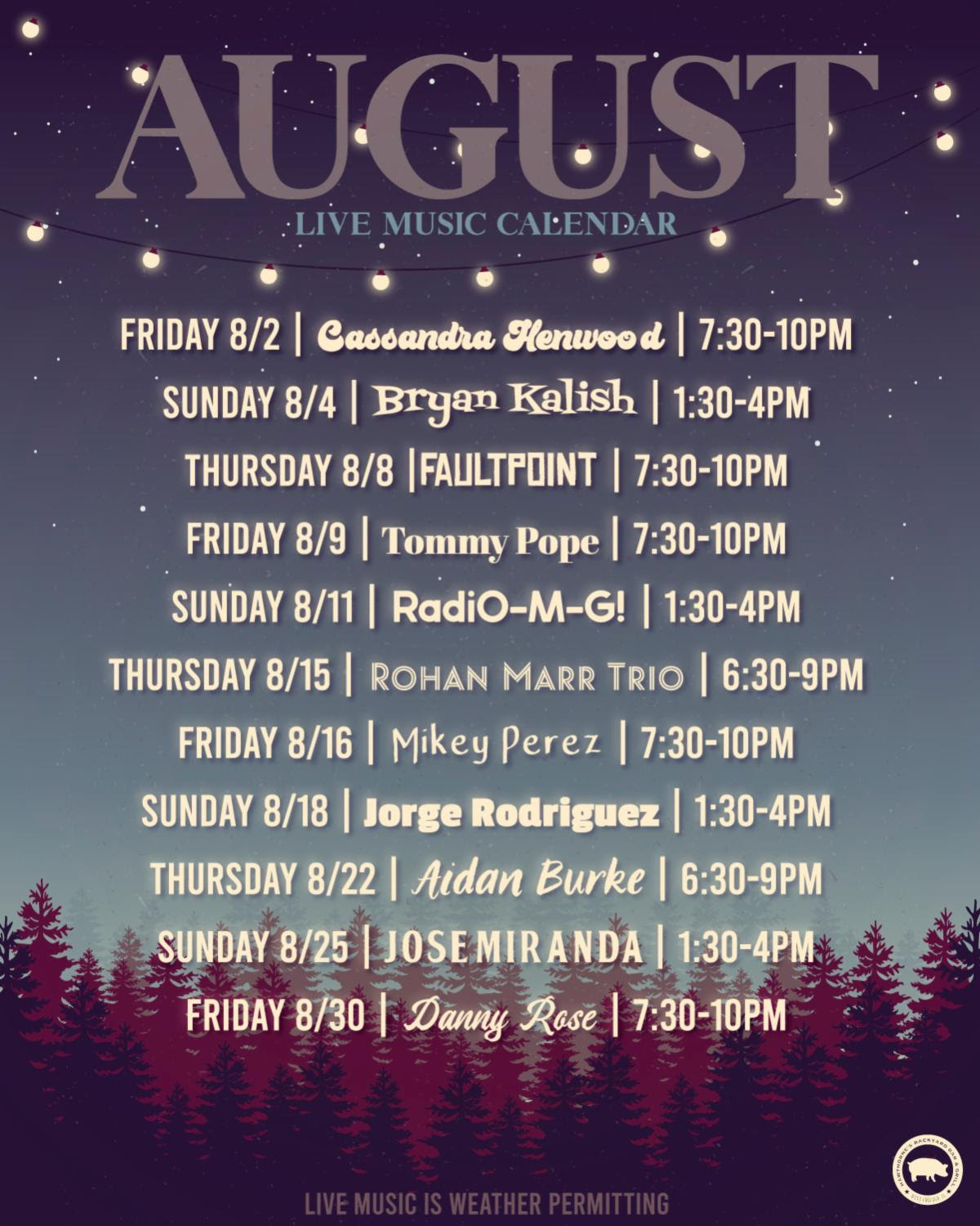 Este mes, Hawthorne’s Backyard es el destino definitivo para los amantes de la música en vivo. Con una electrizante programación de actuaciones, hay algo para todos los gustos musicales, desde rock y jazz hasta versiones de canciones que agradan al público. Disfruta de tus canciones favoritas mientras tomas sol o estás bajo las estrellas, todo acompañado de buena comida y bebida.