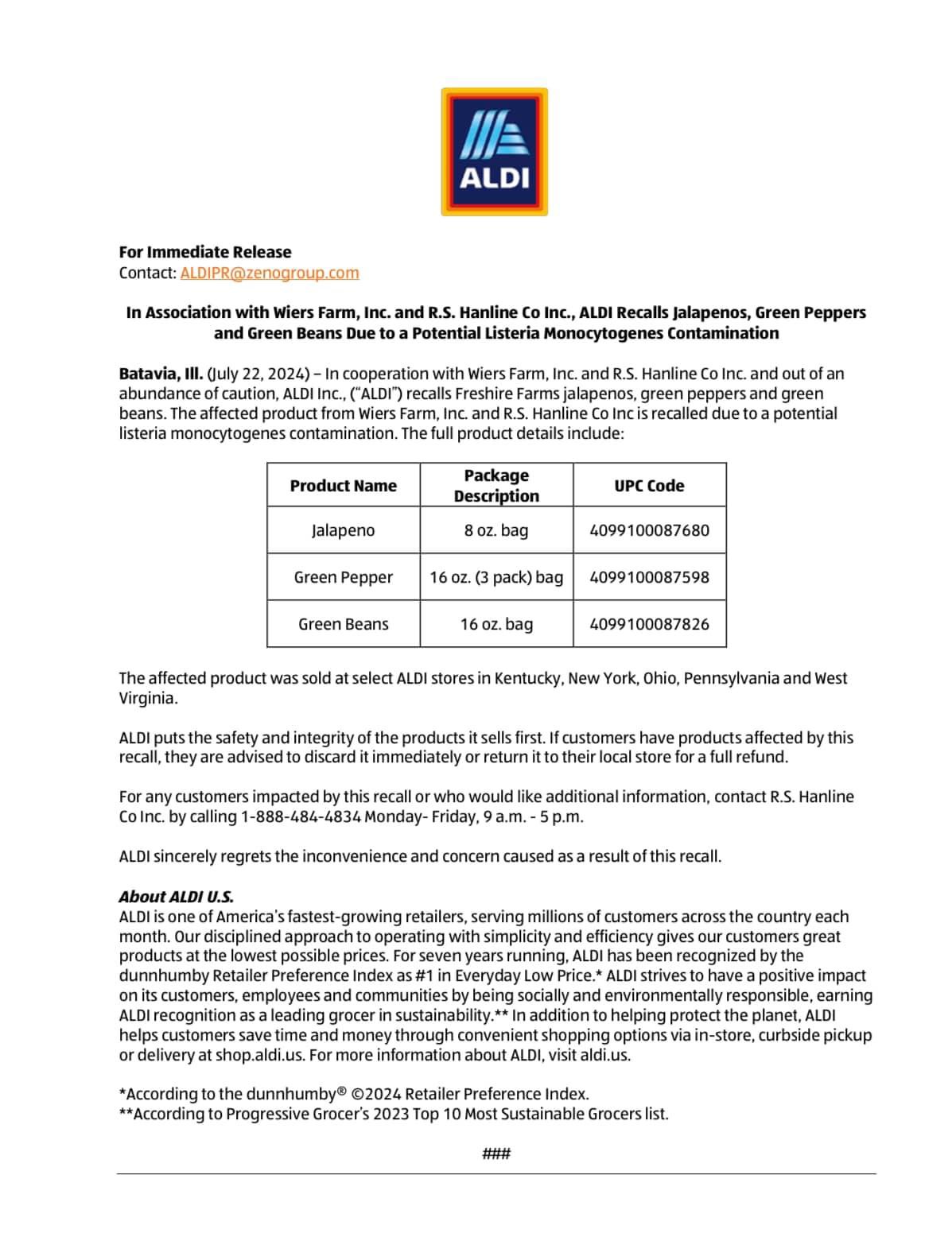 – For produce recalls, customers can reach out to Aldi or Walmart customer service.
