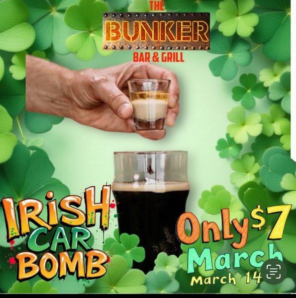 Patrons can sip on signature St. Paddy’s Day cocktails, including a vibrant green drink packed with vodka, gin, rum, tequila, melon liqueur, citrus mixers, and an optional upside-down mini Jameson bottle for those looking for an extra kick. If you’re in the mood for a classic, The Bunker is also pouring $7 Irish Car Bombs on March 14, featuring a drop shot of Irish cream and whiskey into a pint of Guinness—a must-try for the occasion!