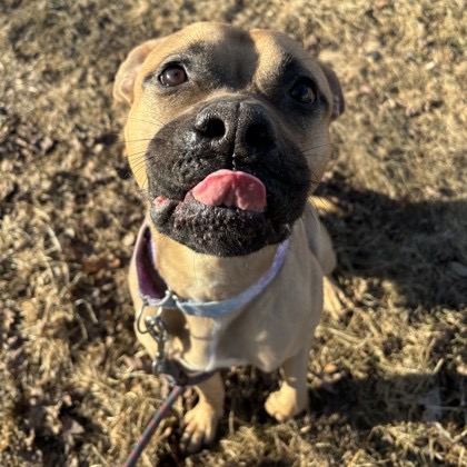 Looking for a loyal companion who can turn any ordinary walk into an adventure? Bistro’s your guy! He comes with a lifetime supply of sloppy kisses and a heart bigger than his adorable blockhead.