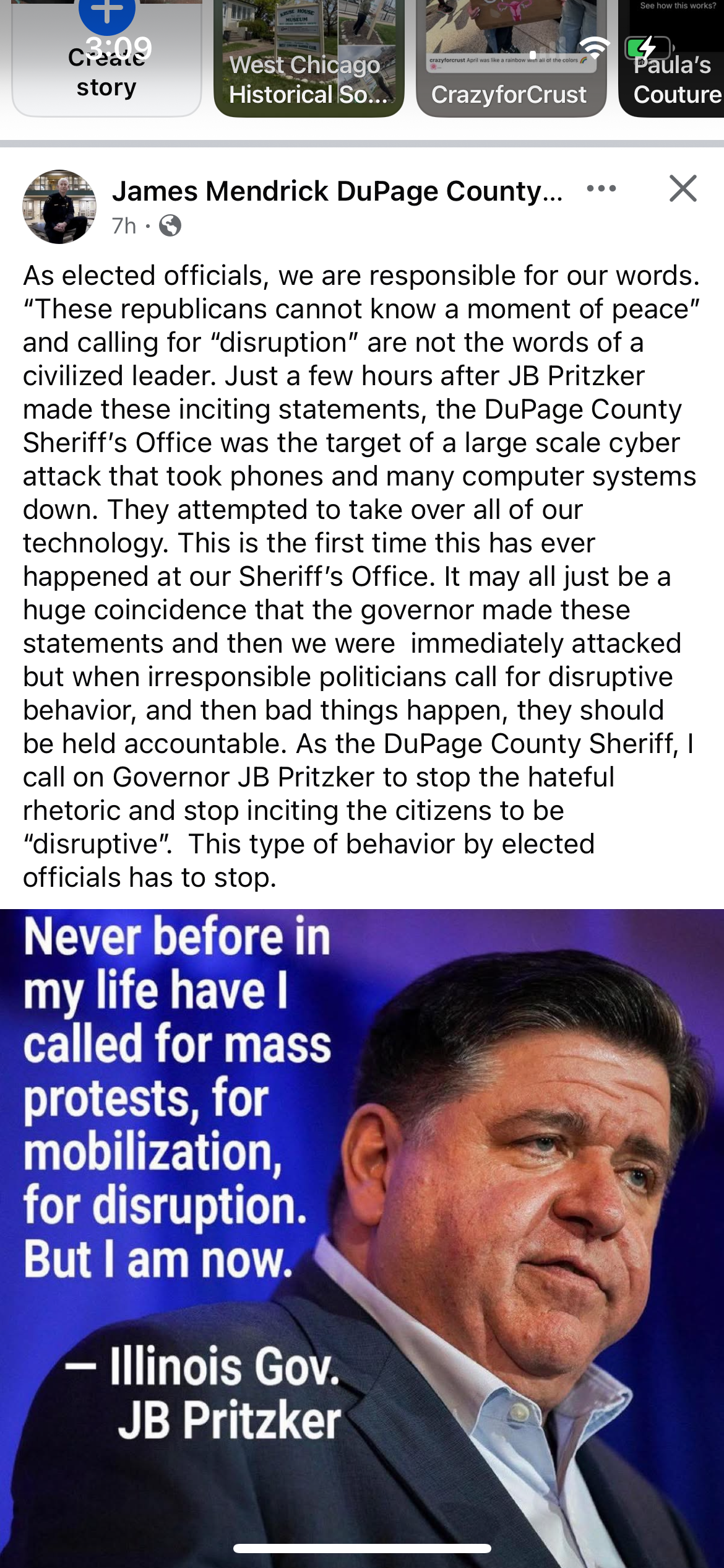 “Just a few hours after JB Pritzker made these inciting statements, the DuPage County Sheriff’s Office was the target of a large-scale cyberattack that took phones and many computer systems down,” Mendrick wrote. “They attempted to take over all of our technology. This is the first time this has ever happened at our Sheriff’s Office.”