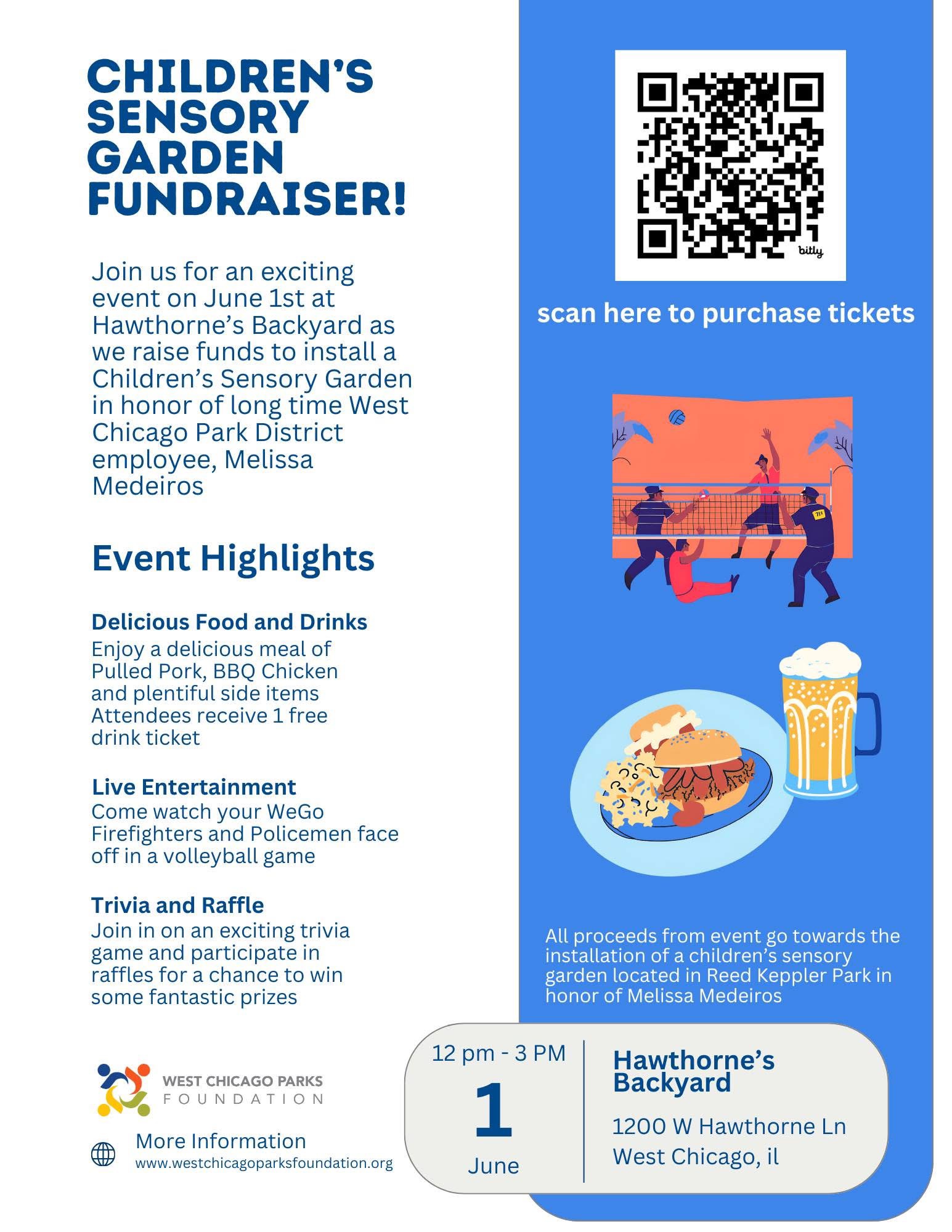 Tickets can be purchased in advance by scanning the QR code on the event flyer or by visiting www.westchicagoparksfoundation.org for more details.