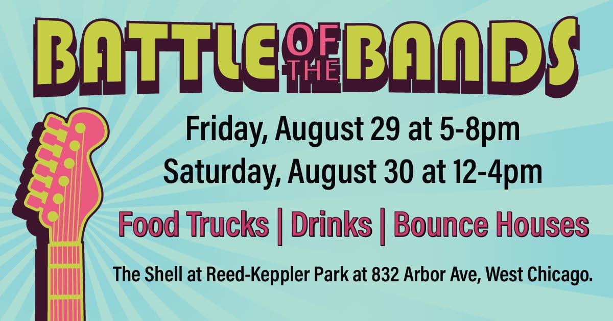The stage is set for an unforgettable weekend of music, food, and family fun as West Chicago’s Battle of the Bands returns to The Shell at Reed-Keppler Park. The event, approved at Monday’s Public Affairs Committee meeting along with several other upcoming community events, will take place Friday, August 29 from 5–8 p.m. and Saturday, August 30 from 12–4 p.m.