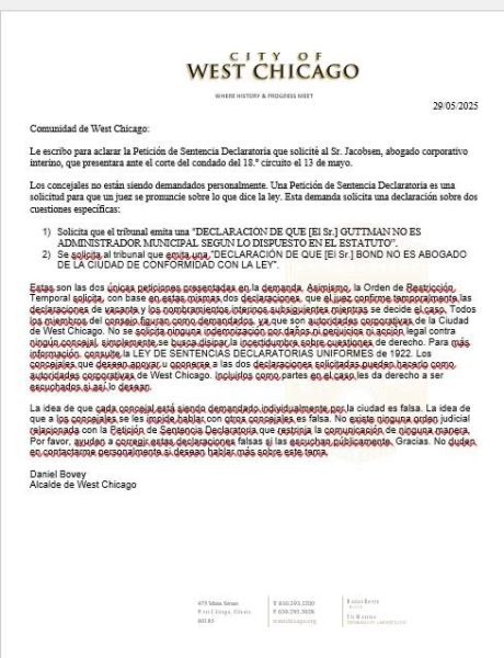 En un intento por abordar la creciente confusión y las críticas políticas, el alcalde de West Chicago, Daniel Bovey, emitió esta semana una declaración oficial para aclarar la intención detrás de una reciente petición judicial que ha generado controversia tanto en redes sociales como en el gobierno local.