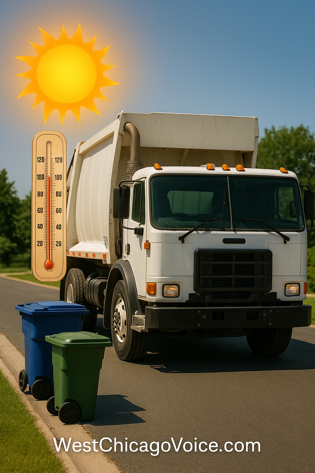 Due to forecasted high heat on Wednesday, July 23 and Thursday, July 24, Groot Industries will begin trash, recycling, and yard waste collection at 5:00 a.m. on both days. Residents are asked to place all items at the curb the night before their scheduled pickup. Please note: drivers will not be able to return for materials set out late.