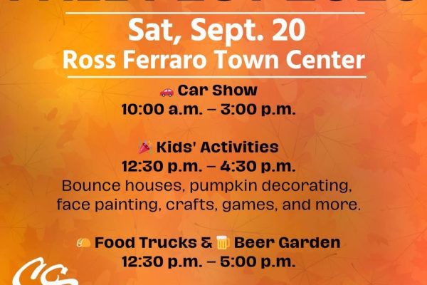 The Village of Carol Stream will host its annual Fall Fest on Saturday, September 20, 2025, at Ross Ferraro Town Center, 960 N. Gary Ave. The event begins with a…
